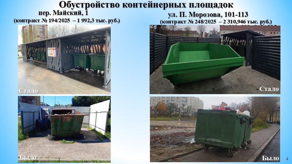Помимо обустройства дополнительно выполнен ремонт 3-х контейнерных площадок: