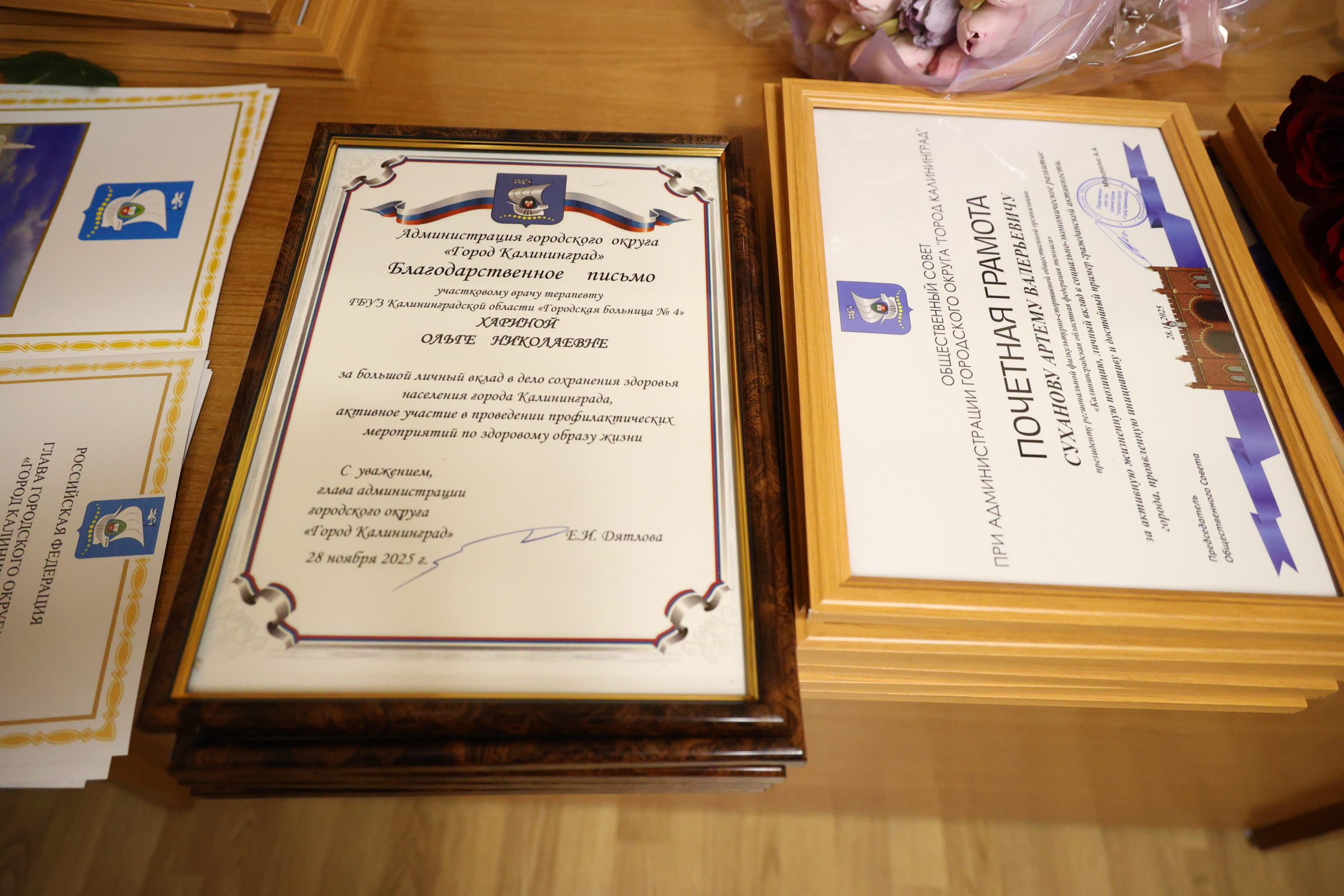 Также в ходе заседания Елена Дятлова, Олег Аминов и Альвидас Мулиуолис вручили благодарственные письма и почётные грамоты наиболее отличившимся калининградцам.