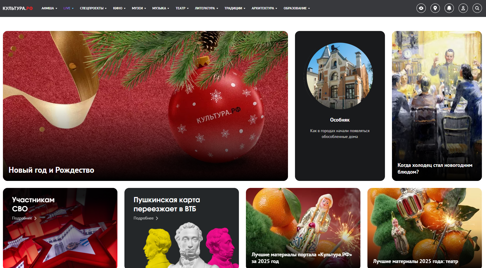 Важным разделом портала является всероссийская афиша мероприятий в сфере культуры. Здесь можно найти информацию о концертах, выставках, спектаклях и фестивалях, проходящих по всей стране. Особое внимание уделяется мероприятиям, билеты на которые реализуются в рамках специальных проектов, таких как программа «Пушкинская карта» и программа льготного посещения культурных событий участниками специальной военной операции и членами их семей.