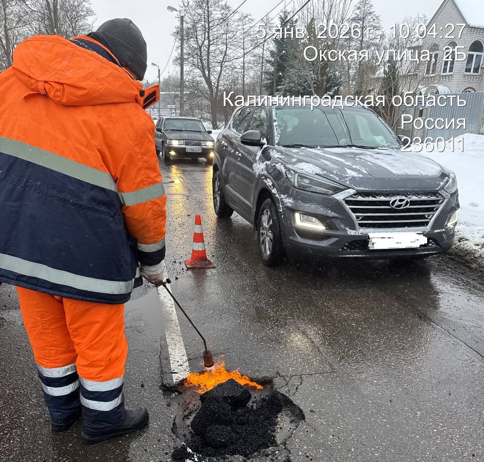 Начиная с 5 января дорожники всепогодным холодным асфальтом устранили аварийные дефекты по Лейт. Яналова, Карла Маркса, Мл. лейт. Родителева, Маяковского, Коммунальной, Вали Котика, Дзержинского, Портовой, Аллее смелых, Окской, Двинской - с одноимённым переулком, Янтарной, Глинки, Малой лесной, Червонной, Платова, Виктора Гакуна, Звёздной, Литовскому валу, Алябьева, Чайковского, Подп. Емельянова, Левитана, Энергетиков, Закатной, Артиллерийской и Зои Космодемьянской.