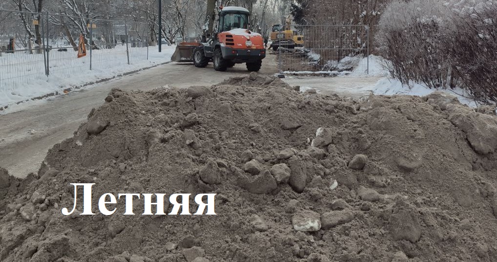 На Летней демонтируют старый тротуар со стороны жилых домов и вывозят лом.