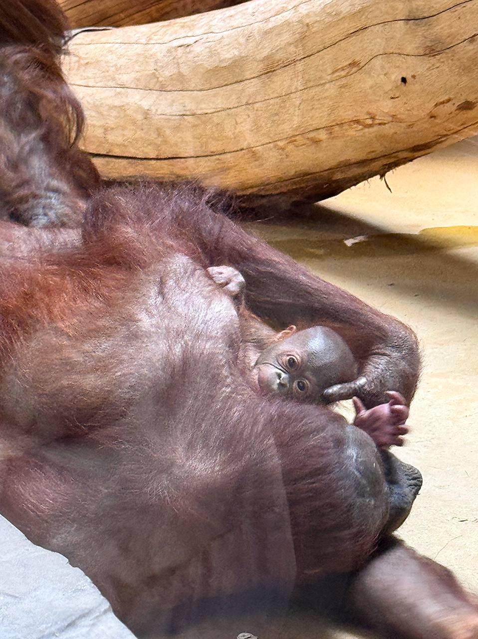 Нона, как опытная мать, исправно кормит детеныша и все время ограждает его от излишнего внимания самца и посетителей. Как кормящей матери, ей усилили ежедневный рацион.