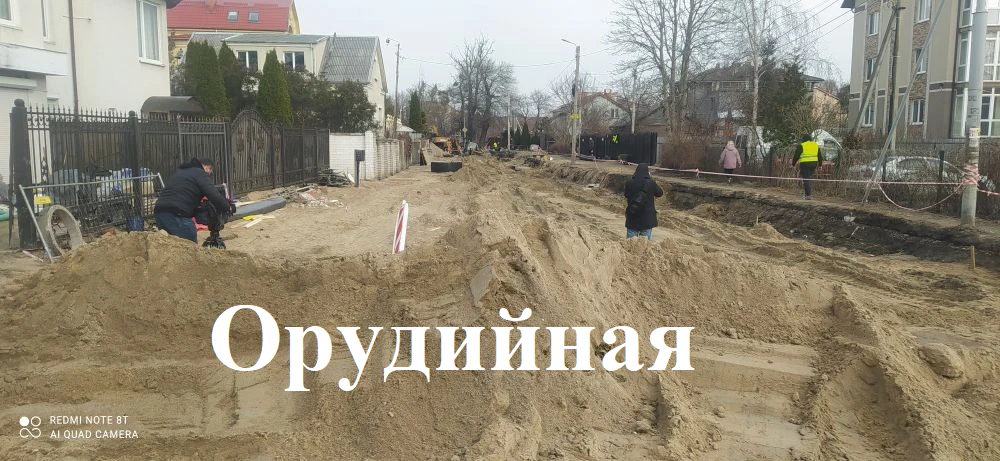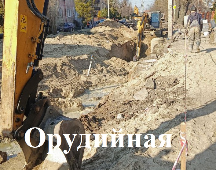 На Орудийной тянут сети водопровода и канализации, а также кабели связи, готовят песчаное основание дороги.