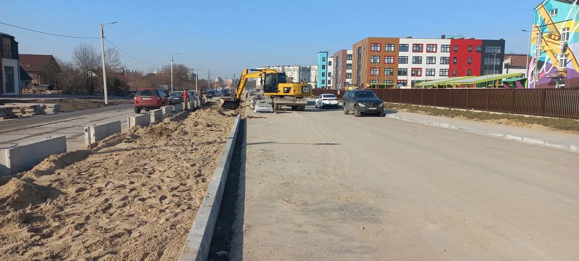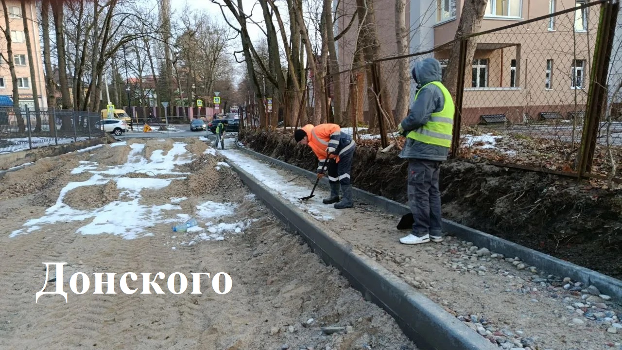 В проезде от перекрёстка Громовой-Понартской до Фрегатной готовят песчаную подушку и укладывают на ней плиты.