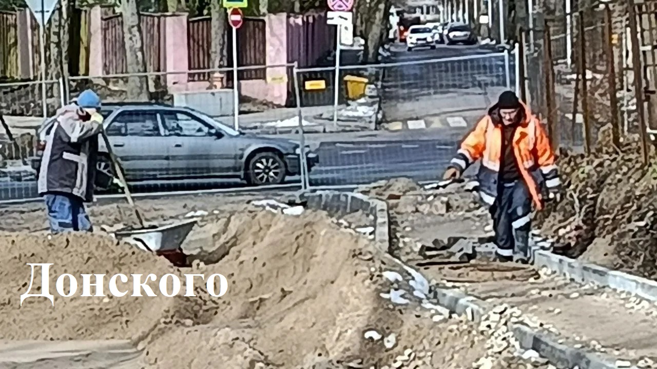 На Дмитрия Донского у детской больницы готовят тротуарные основания.