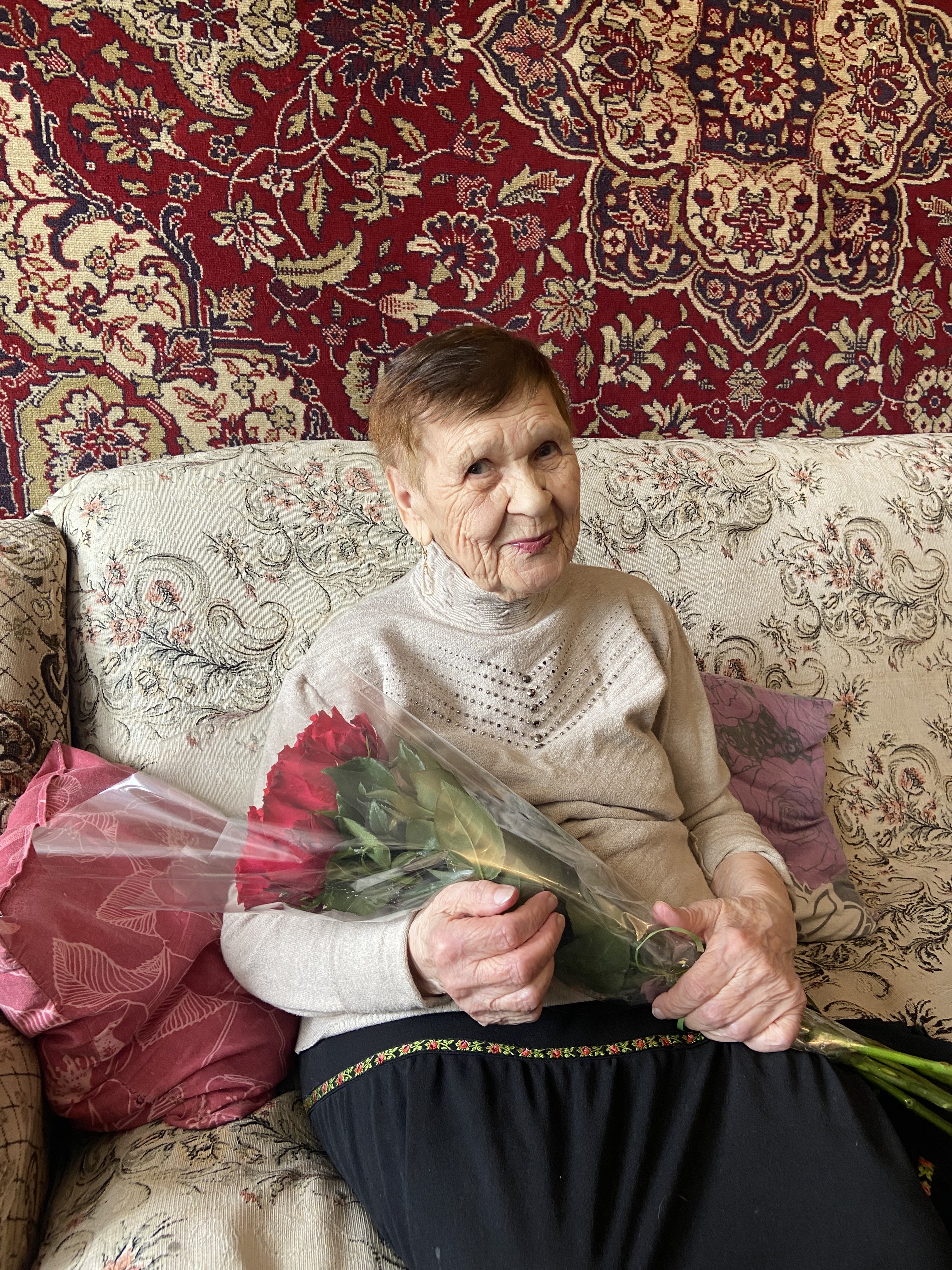 Сегодня ветерана поздравили специалисты управления соцподдержки населения администрации Калининграда. Они вручили юбилярше памятный адрес от главы администрации Елены Дятловой и подарок.