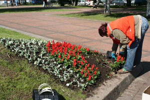 Высаженные осенью разноцветные махровые тюльпаны уже порадовали горожан буйством красок. Но время их цветения заканчивается. Специалисты подрядной организации ООО «Декоративные культуры» начали «смену сезона» на городских клумбах и цветниках. Несмотря на более скромное, чем в предыдущие годы, финансирование этой статьи, оранжевые тагетесы, более известные как бархатцы, серебристые цинерарии и ярко-красные сальвии украсят городские улицы, скверы и площади.