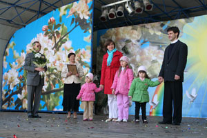 Председатель комитета социальной поддержки населения Татьяна Лемешко поблагодарила родителей за воспитание достойных детей, а юных калининградцев поздравила с праздником и пожелала интересно и полезно провести лето, чтобы окрепшими, отдохнувшими и с новыми друзьями прийти в сентябре в школу. На сцене Певческого поля прошло награждение Почетными дипломами «Признательность» Министерства социальной политики Правительства Калининградской области пяти семей из Калининграда. В семье Маханьковых каждый – яркая творческая личность. Глава семьи Владимир участвует в многочисленных международных и всероссийских выставках ювелиров и художников. Дети - Илья и Денис – талантливые музыканты, достигшие блестящих результатов в исполнительском искусстве. Младший Илья является стипендиатом главы администрации Калининграда. Михаил и Анна Васильевы – преподаватели высшей категории ДОД ДМШ им. Р.М. Глиэра, оба из семей потомственных музыкантов. Они воспитывают троих дочерей: Марию, Елизавету и Полину, успешно продолжающих музыкальную традицию. Наталья Поставничая воспитала троих замечательных детей – Светлану, работающую старшим инспектором по пропаганде УГИБДД, капитана милиции, Александра, курсанта КЮИ МВД РФ и Анастасию - ученицу школы № 10. В семье Шпаковских четверо детей: глава семьи Сергей – профессиональный тренер по карате, старшая Анастасия – студентка РГУ им. И. Канта имеет коричневый пояс по каратэ, Наталья заканчивает лицей № 49 – занимается йогой и плаванием, десятиклассница Екатерина мечтает быть тренером как папа, а дошкольник Никита уже занимается каратэ.