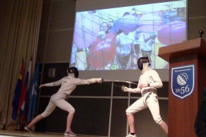 Лучшие калининградские пятиборцы, победители российских и международных соревнований, воспитанники ГБОУ ДОД КО «КСДЮСШОР по современному пятиборью» Арина Корицина и Виктор Саух провели показательные выступления по фехтованию