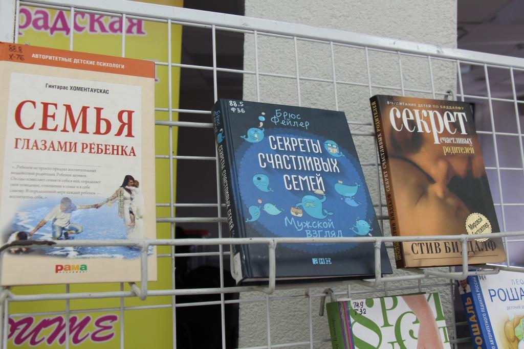 Рядом со стендами с фотографиями, которые выполнены в разных техниках и освещают яркие стороны жизни калининградских семей, развёрнута и небольшая книжная выставка. На ней представлены издания, которые рассказывают о семейных династиях славных россиян, книги, помогающие старшим найти общий язык с детьми и внуками, проверенные практикой сборники полезных советов признанных авторитетов, а также работы, полные «полезных уловок». Например, как приохотить современного ребёнка к чтению.