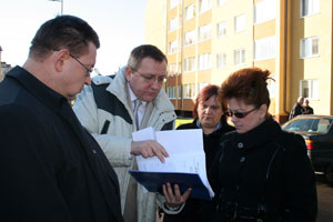 И.о. главы администрации Калининграда Светлана Мухомор, заместитель председателя окружного Совета депутатов Александр Пятикоп и председатель комитета муниципального имущества и земельных ресурсов Александр Зуев посетили место вырубки деревьев в поселке Чкаловске.