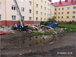 При производстве работ по прокладке дренажного коллектора отсутствует ограждение места работ, не приняты своевременные меры по вывозу строительного мусора ООО «ТермоТехБалтика».