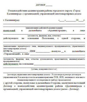 В комитете городского хозяйства администрации городского округа «Город Калининград» разработана рекомендуемая форма договора о взаимодействии районных администраций с организациями, управляющими многоквартирными домами.