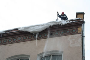 Кроме того, высококвалифицированным спасателям-универсалам пришлось вместо персонала УК сбивать снег и сосульки, счищать снег, ограждать опасные места.