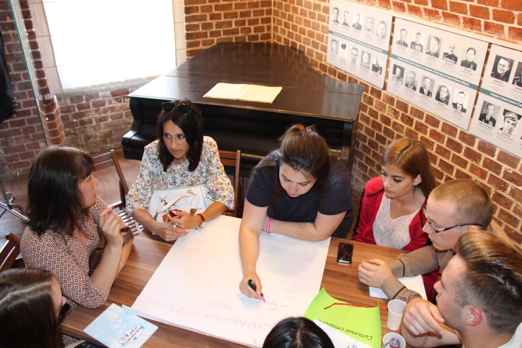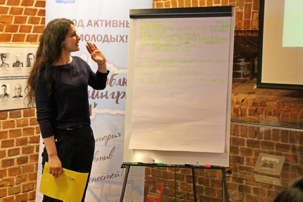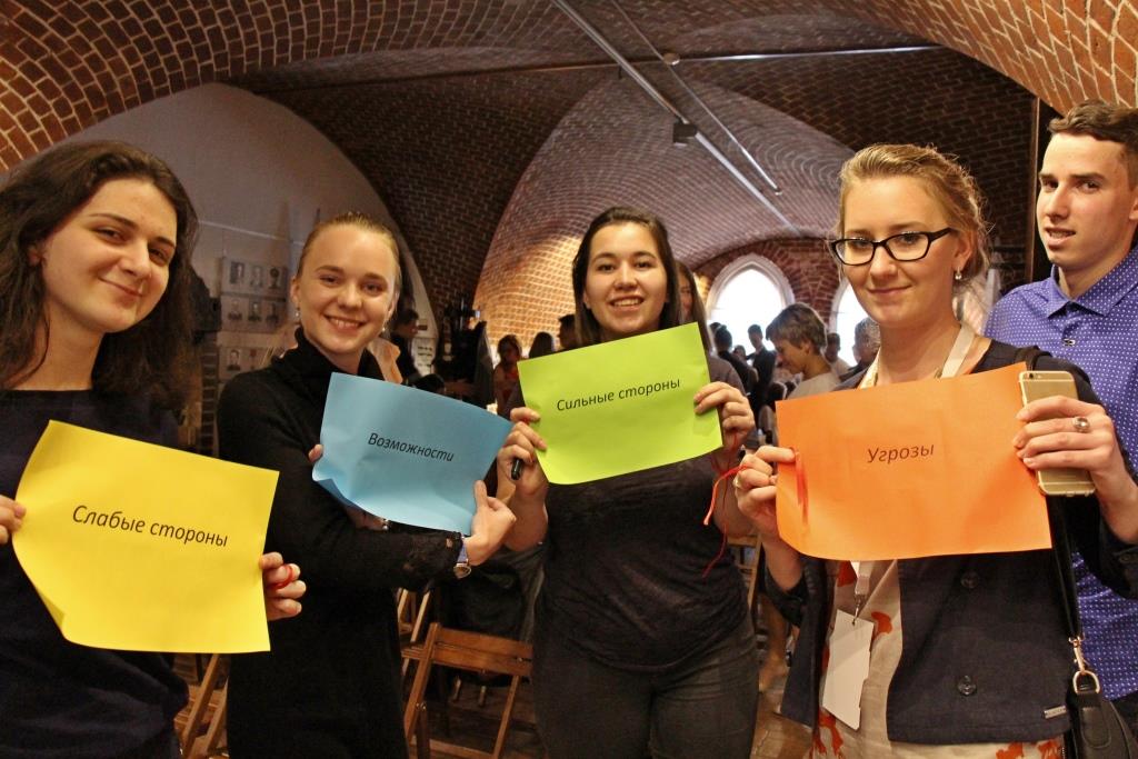 Затем ребята поделились на команды, чтобы за несколько минут подготовить презентации на заданные темы – о сильных и слабых сторонах Калининграда, о его возможностях и вероятных угрозах.