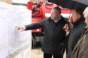 Глава Калининграда Александр Ярошук принял участие в переключении участка разгрузочного канализационного коллектора на пересечении улиц Льва Толстого и Ленинградской.