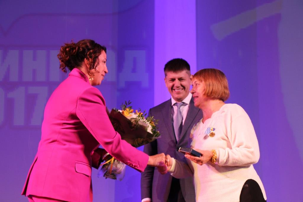 Каждый из них получил из рук Андрея Кропоткина и Анна Апполоновой почётные знаки и удостоверения, а также букеты цветов.