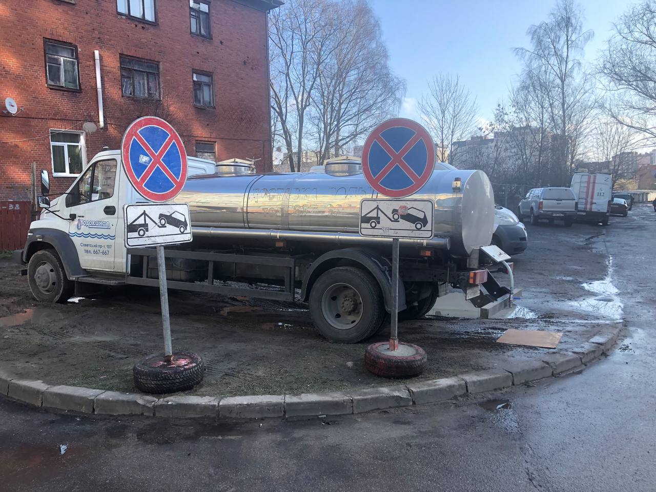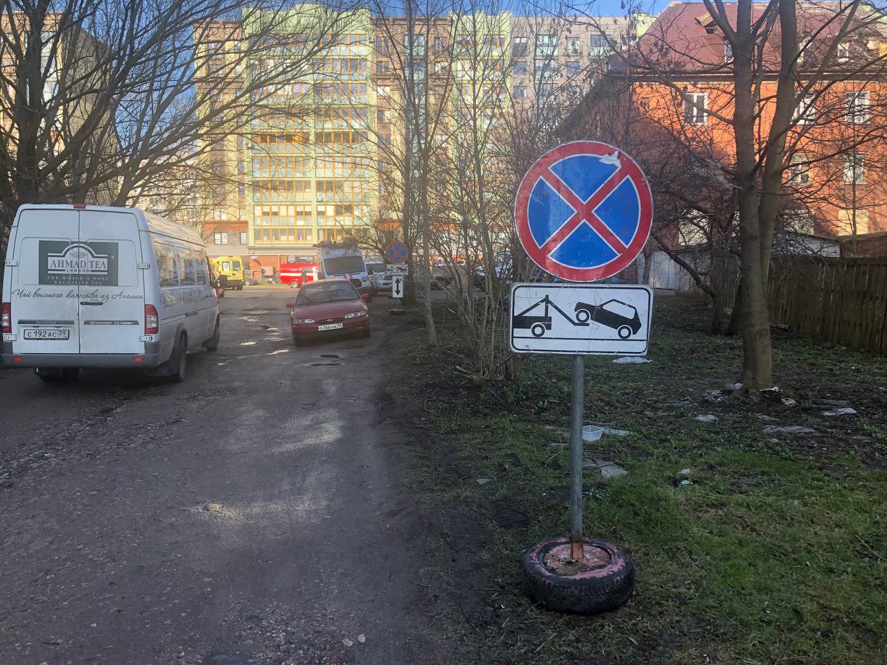 Запрещена остановка транспортных средств в районе домов по адресам ул. Артиллерийская, № 36-38, ул. Артиллерийская, № 34 и разворотного кольца. Установлены дорожные знаки 3.27 «Остановка запрещена» с табличкой «Работает эвакуатор».