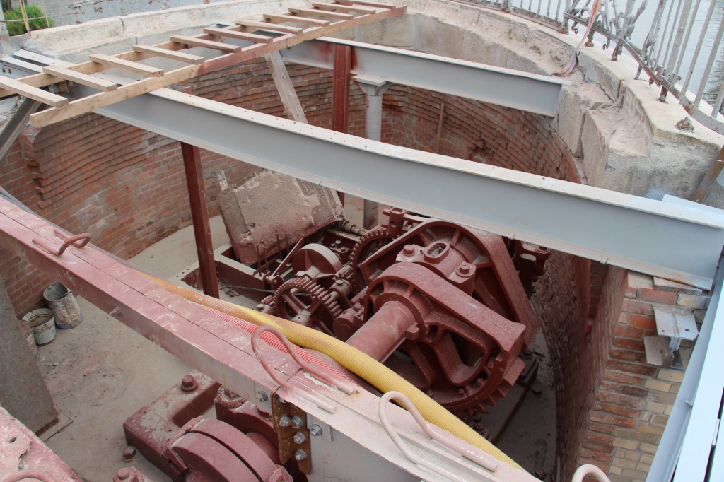 Части старого разводного механизма моста, демонтированного в процессе работ, переданы в музей «Фридландские ворота».