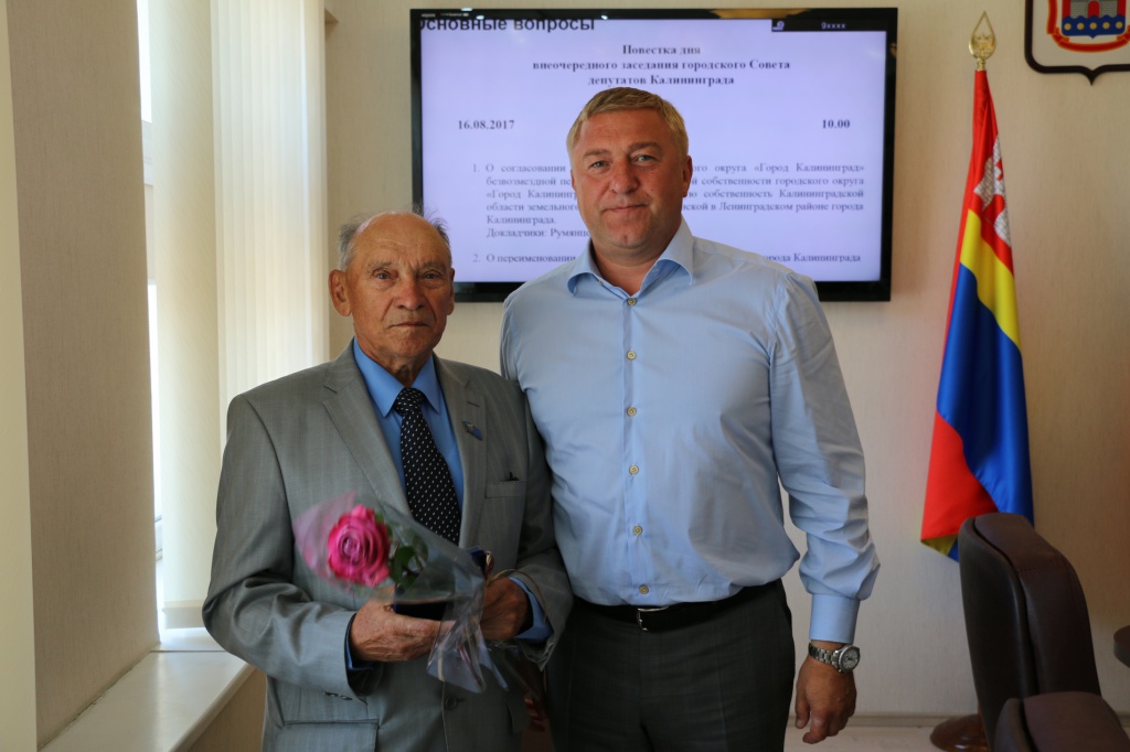 Сегодня на внеочередном заседании городского Совета депутатов глава города Александр Ярошук вручил медали «За заслуги перед городом Калининградом».