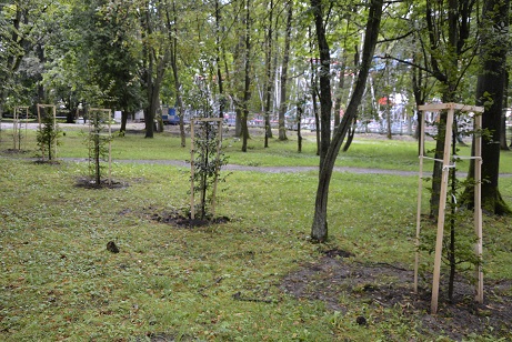 В Центральном парке культуры и отдыха посадили восемь молодых грабов.