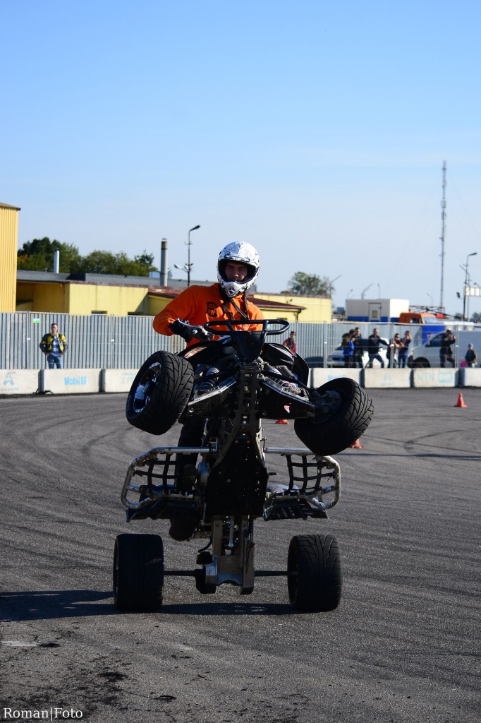 После обеда начались квалификационные заезды – все гонщики успешно справились с поставленной задачей и на время покинули площадку, готовясь к парным заездам. А в это время зрителей порадовали ребята из команды «Stuntmen». Не давая зрителям выдохнуть и минуты, на площадку выехали дрифтеры – парад участников получился ярким и шумным. Следом за спортсменами на площадку выехали участники автостайлинга, среди которых с помощью зрительских оваций ведущие определили лучших. Но главная интрига была впереди.
