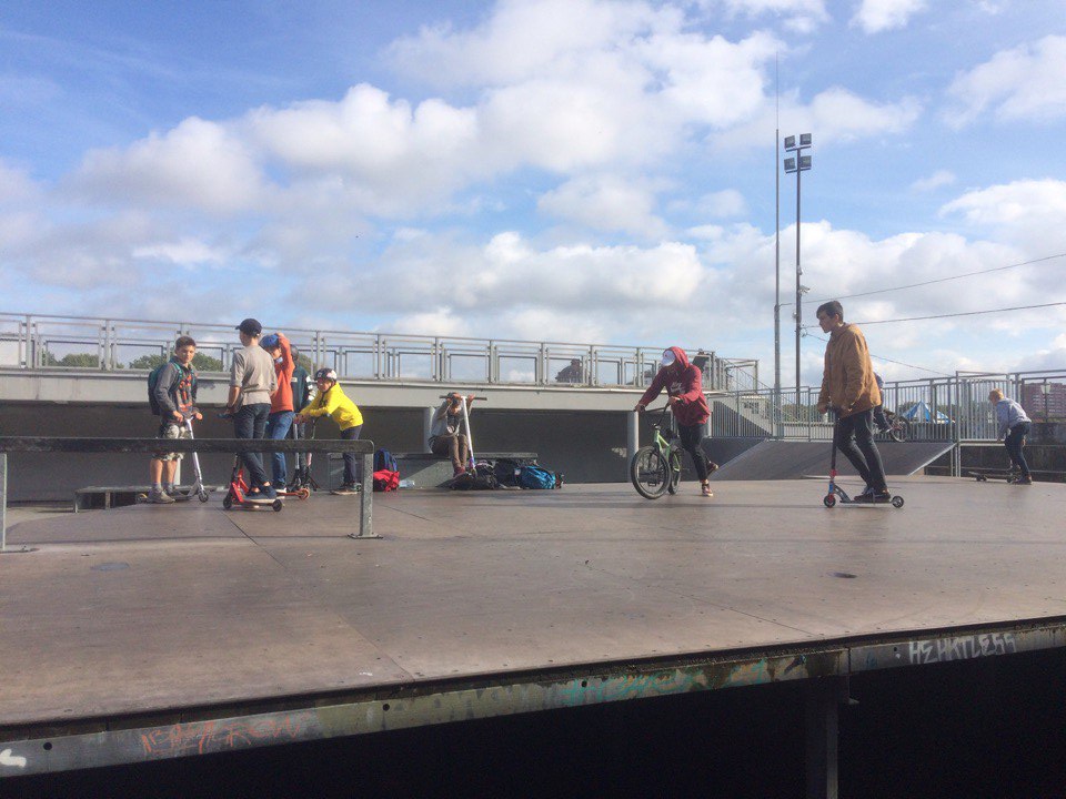 На этом активная фаза закончена, но райдеры ещё будет выжидать сухие деньки, чтобы безопасно потренироваться на «Скейт-велопарке», порадовав себя и прохожих своим выросшим за сезон мастерством.