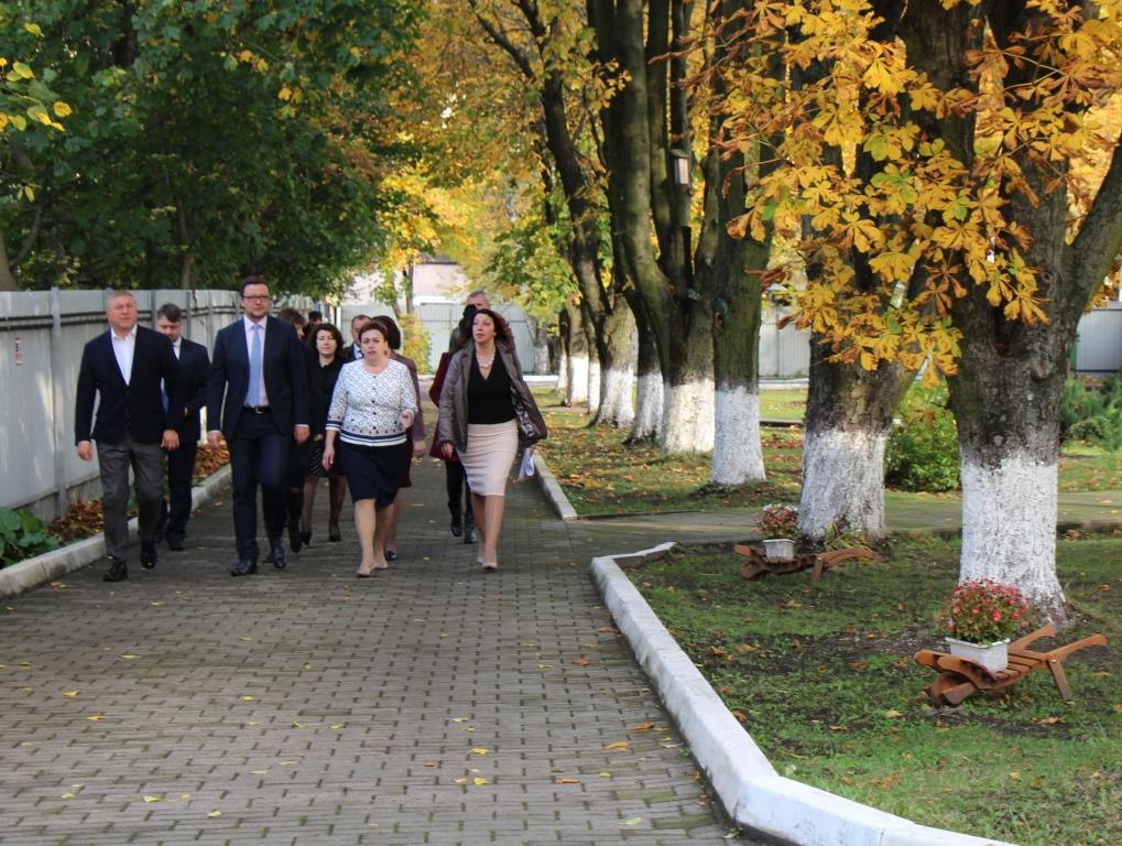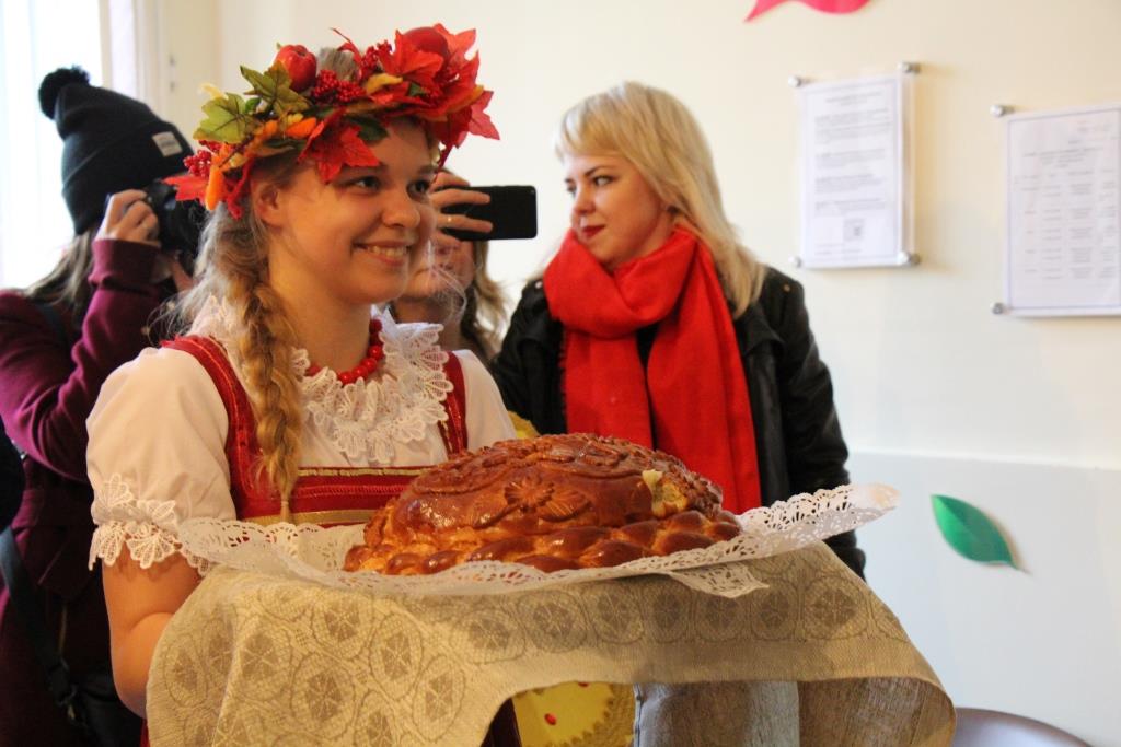 По обычаю, особенно уместному в осеннюю пору, визитёров встретили караваем и хороводом. Гости, в свою очередь, пришли не с пустыми руками – детский сад получил большой телевизор, приставку к нему и конструкторы.