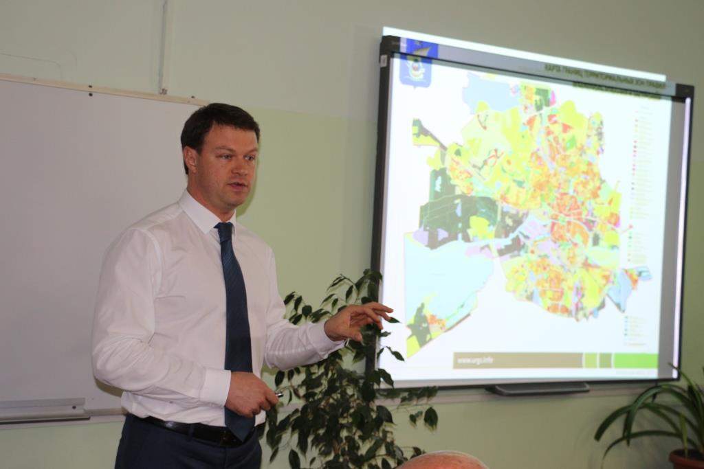 Встреча заместителя главы администрации, председателя комитета архитектуры и строительства Артура Крупина с горожанами, проживающими Восточном жилом районе с целью обсуждения проекта правил землепользования и застройки (ПЗЗ) была организована в рамках работы над новыми ПЗЗ, которые разрабатываются вслед за генпланом Калининграда на ближайшие 20 лет.