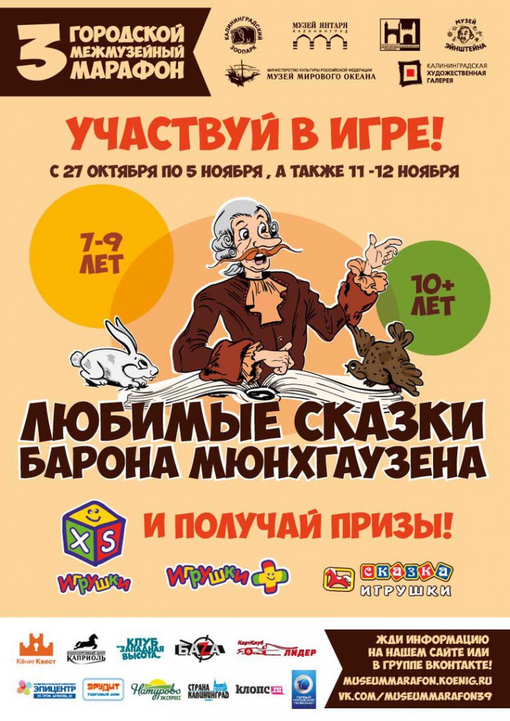 27 октября в Калининграде стартует III межмузейный марафон «Любимые сказки барона Мюнхгаузена». Паспорта участников в продаже с 18 октября.