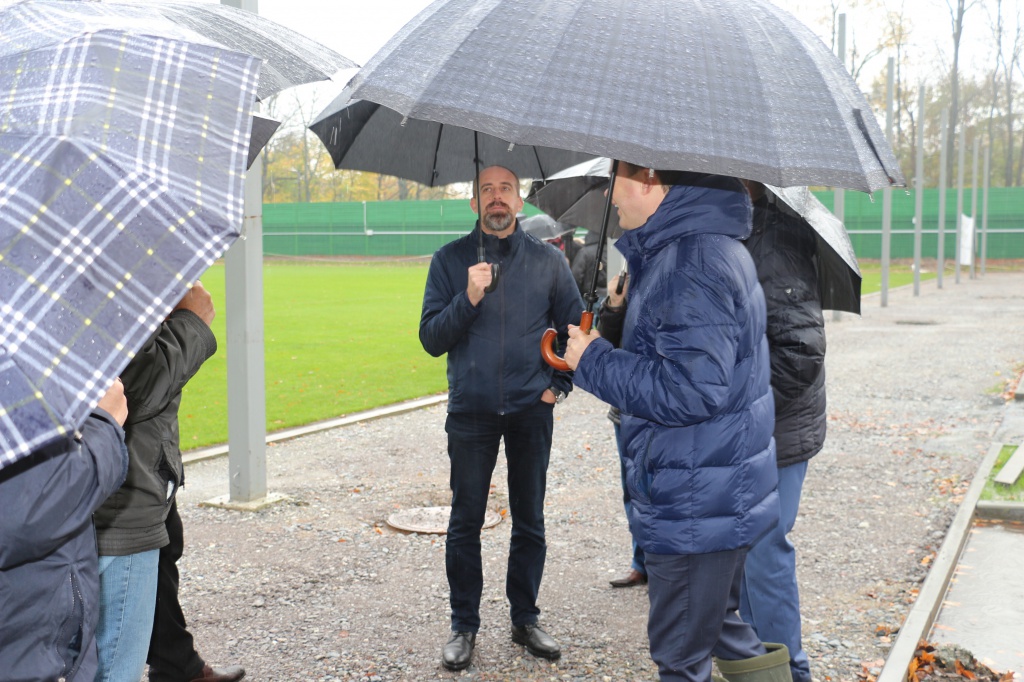 «Готовность обеих тренировочных площадок составляет 95%. Осталось совсем немного работы - положить верхний слой асфальта, кое-где доделать благоустройство. Самое главное – оба футбольных поля полностью готовы. Хорошо, что сегодня во время проверки идет сильный дождь, мы смогли убедиться, как хорошо работает дренаж. Он отводит с поля всю лишнюю воду. С учетом, что дождь идет давно, если были бы проблемы, на обоих полях уже стояли бы большие лужи. Мы проверили раздевалки и другие объекты - они тоже готовы. Поэтому можно с уверенностью сказать, что мы, город, свои обязательства выполнили», - прокомментировал Александр Ярошук.
