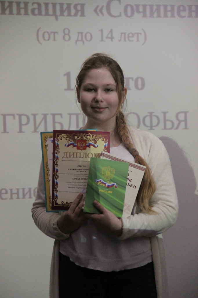 1 место — Софья Грибло, ученица 5 «Л» класса лицея № 23, сочинение «Борьба двух волков» (руководитель — учитель русского языка и литературы Елена Викторовна Тимченко);