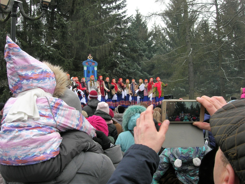 Веселье проходило под традиционные весенние песни, которые исполняли фольклорные ансамбли «Россичи», «Зоряна» и «Талица».
