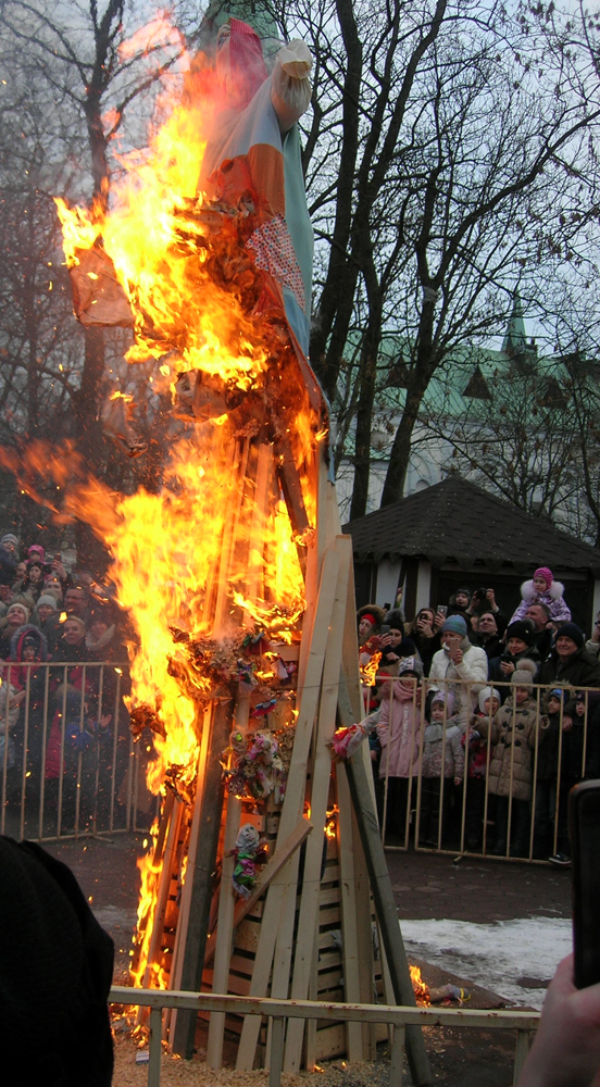 Весь день гости парка несли к костру соломенных кукол-веснянок с пожеланиями теплой весны и записки, которые должны были сгореть вместе с уходящей зимой. А завершился праздник семиметровым костром, смехом и весельем.