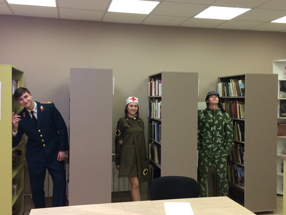 В Центральной городской библиотеке им. А.П. Чехова состоялся литературный дозор, в котором приняли участие 140 человек (курсанты КМРК, студенты ВУЗов города, волонтеры). Дозор «Бравое дело» был посвящен военной тематике – 75-летию победы в Сталинградской битве, Дню памяти воинов-интернационалистов, Дню защитника Отечества. Разработанные «маршруты», специально сшитые костюмы, вещно-предметный ряд той эпохи погрузили участников в атмосферу военного времени.