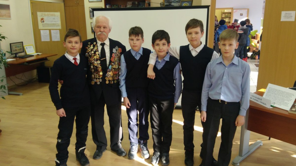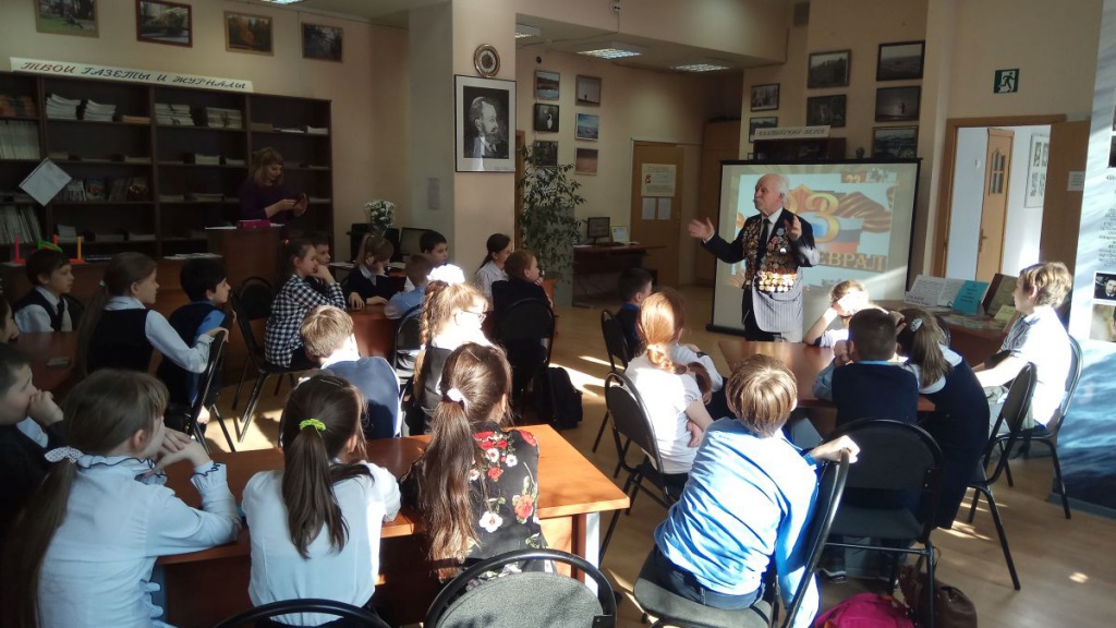 В детской библиотеке имени А.П. Соболева учащиеся 5 «А» класса школы №5 приняли участие в познавательно-игровой программе «От клинка и штыка до могучих ракет». Гостем встречи стал участник боевых действий в годы Великой Отечественной войны Салават Григорьевич Митин. Вниманию ребят была представлена презентация об истории праздника, а в интеллектуальном соревновании среди мальчиков был выбран «Добрый молодец» Александр Моргунов.