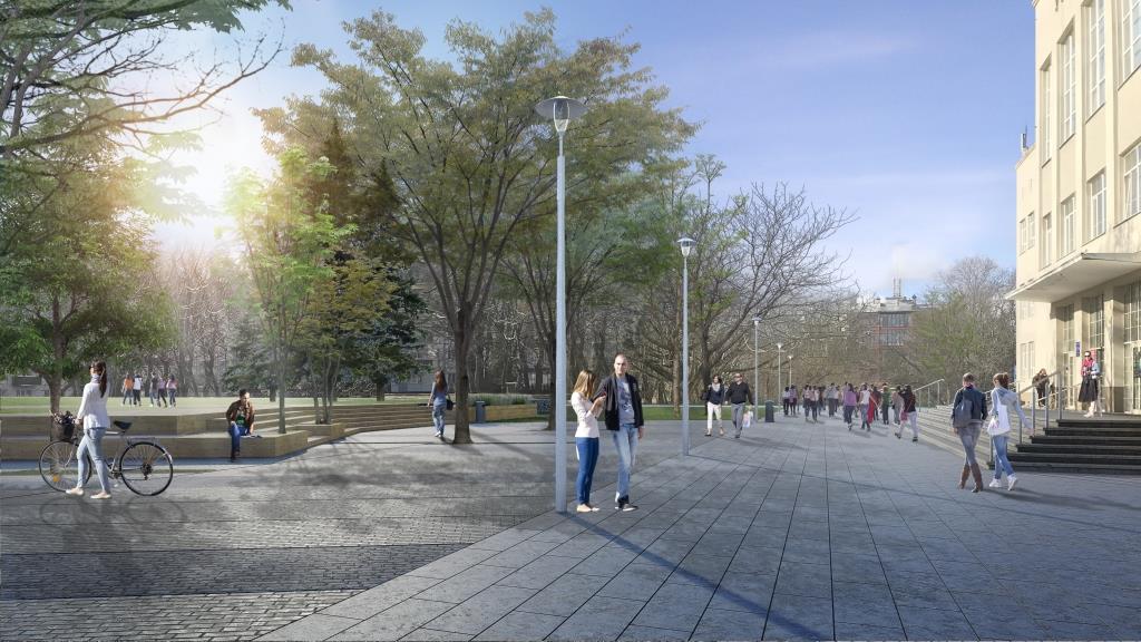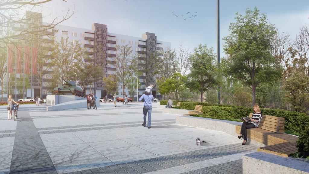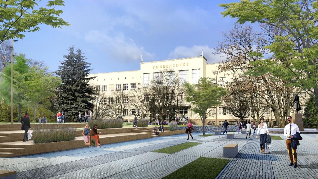 Проект предусматривает благоустройство сквера на Университетской и разделение зеленой зоны на улицах Соммера и Рокоссовского двусторонним проездом.