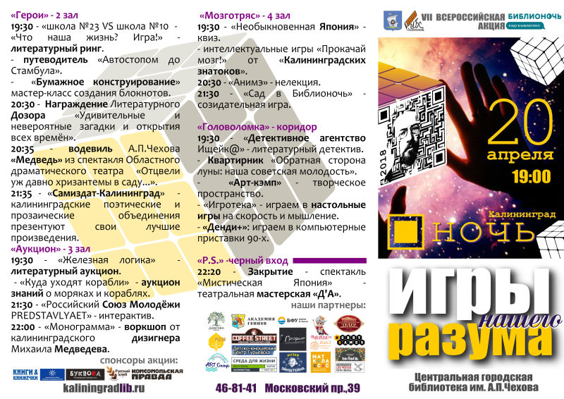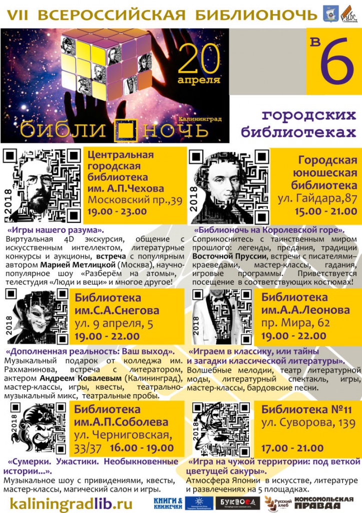 Вся информация о «Библионочи-2018» в библиотеках города на сайте: http://www.kaliningradlib.ru