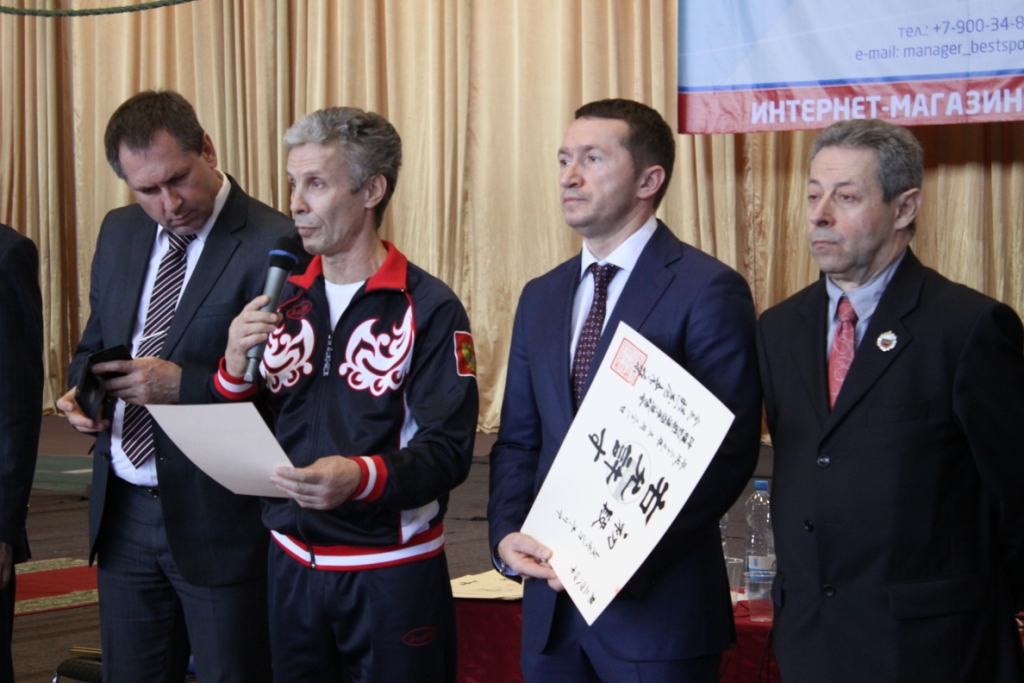 На торжественном открытии соревнований почётный член федерации каратэ Калининградской области Олег Быков и заслуженный тренер России  Александр Гендриксон вручили группе спортсменов японские сертификаты обладателей первых данов.