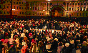 Еще около 20 000 россиян смогли наблюдать за съемочным процессом: во всех городах акция становилась масштабным событием с праздничными концертами на главных площадях. Специально для съемок их украшали по-новогоднему, устанавливая в центре многометровые ёлки.