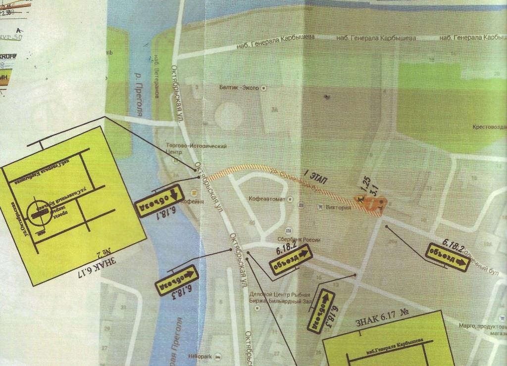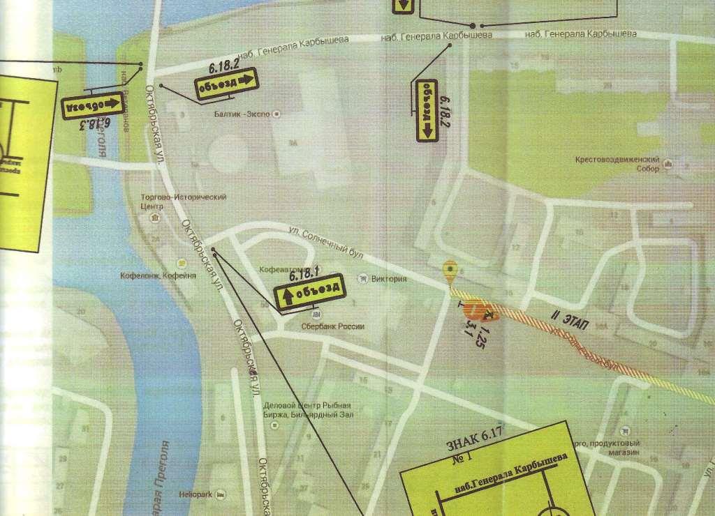 Постановлением также возложена обязанность на ЗАО «ДСП», являющееся подрядчиком по строительству УДС, до начала строительно-монтажных работ установить ограждения и дорожные знаки согласно схеме организации движения транспорта и ограждения места производства работ в присутствии представителя ОГИБДД УМВД России по городу Калининграду. ЗАО «ДСП» является и ответственным за обеспечение безопасности пешеходов и транспорта во время строительства УДС.