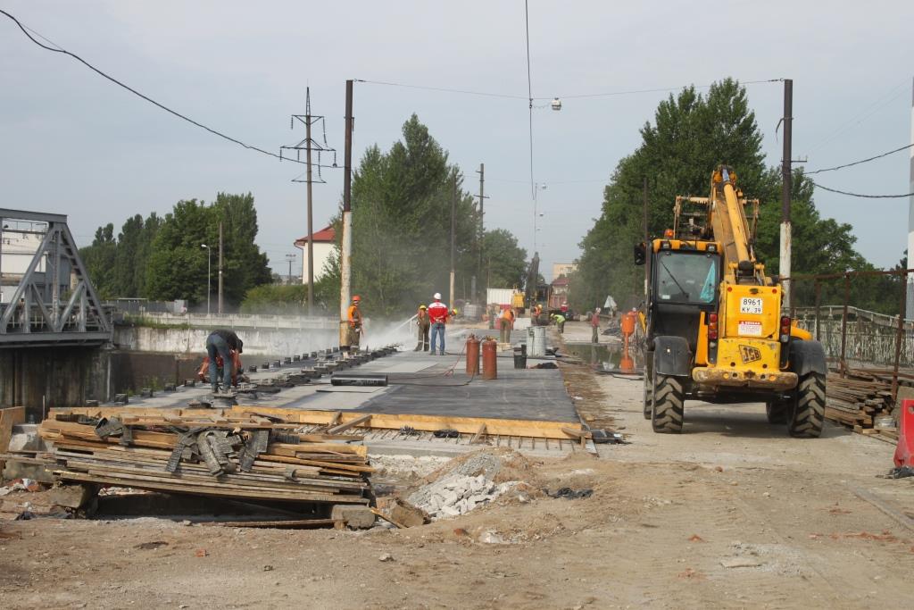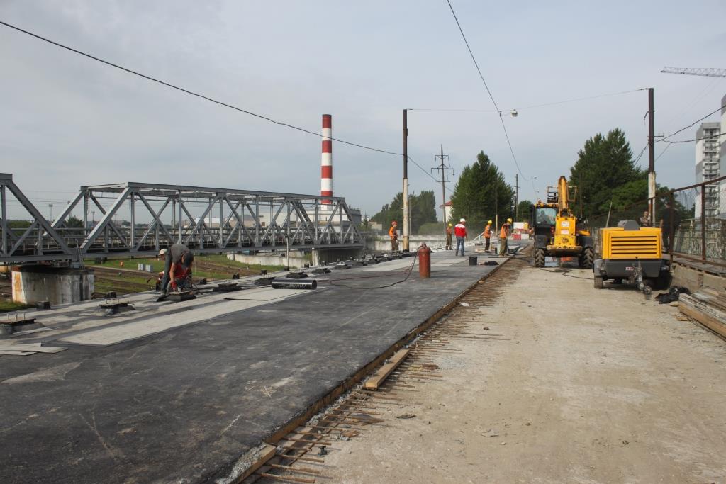 Ремонт осуществляется в соответствии с графиком. В настоящее время объем выполненных работ составляет 30%: выполнен монтаж двух новых балок и четырех пролетов, установлены горизонтальные и вертикальные тяги, заармированы и забетонированы пешеходная консоль и плита покрытия пролетного строения, установлены цоколи под барьерное ограждение и закладные под перильное ограждение. Александр Ярошук рассказал, что на левой полосе уже осуществляется гидроизоляция, которая будет закончена на этой неделе. На следующей недели рабочие приступят к заливке бетона и установке ограждения. В соответствии с планом до конца июля полоса должна быть обустроена.