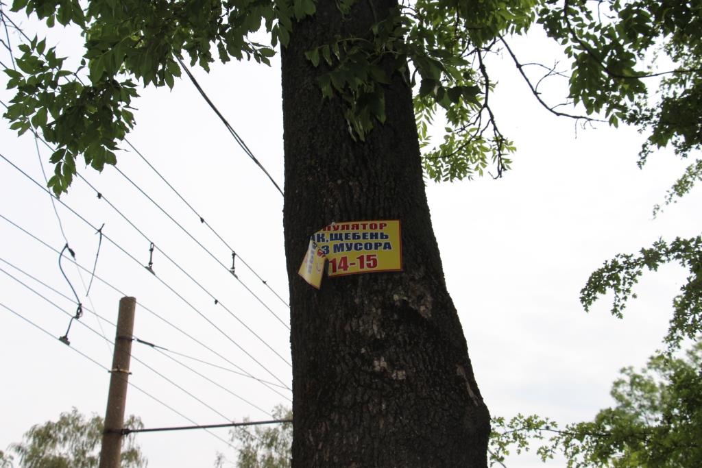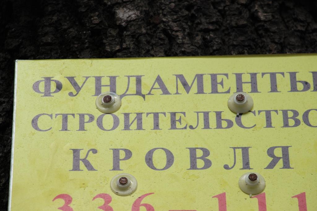 «Я снял с деревьев несколько десятков рекламных табличек на ул. Ломоносова, Березовой аллее, Тенистой аллее, проспекте Мира. Получился большой пакет мусора. А сколько гвоздей и саморезов пришлось вытащить! Еще срезаю рекламу, которая наклеена скотчем: из-за нее скапливается влага, и дерево не может нормально «дышать». Это отличная акция: такая реклама уродует город, и нужно бороться с ней всем вместе», – поделился в своем письме в газету калининградец Евгений Мосиенко.