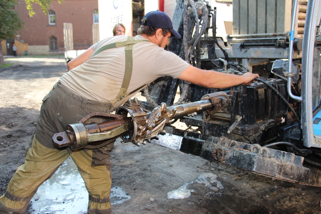«Как видите, на пути прокладки трубы достаточно много препятствий, поэтому было принято решение проводить работы современным методом наклонно направленного бурения. Подрядчик делает две проходки по 80 метров на глубине от 11 до 15 метров. Газовая труба пройдёт под Литовским валом и протекаюшим вдоль него ручьём. Такой способ прокладки в Калининграде уже неоднократно применялся, он экологичен и быстрее традиционного», – объяснил председатель КАиС.