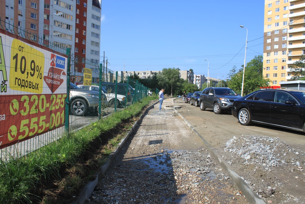Еще один внеплановый визит был совершен на ул. Автомобильную, где ведется обустройство тротуара и где глава города и депутат по округу Олег Быков накануне. Отсутствие рабочих на проверяемом участке также вызвало недовольство главы города, и стало поводом для усиления контроля за подрядчиком.