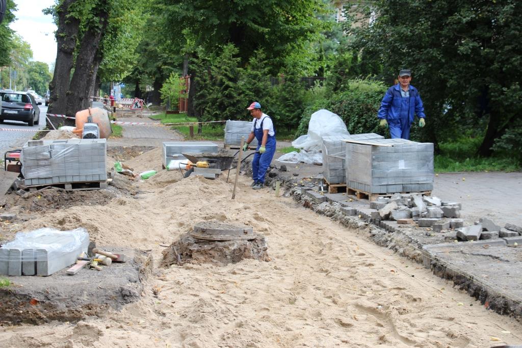 В настоящее время подрядчик ведет работы по укладке плитки напротив дома № 30. Ремонт тротуара на участке от улицы Верхнеозерной до улицы Лермонтова уже завершен. Полностью работы по капитальному ремонту тротуара на улице Тельмана подрядчик планирует завершить к середине сентября.