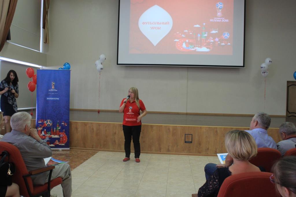 В Калининграде тематические занятия прошли на площадке лицея № 18. Сначала в актовом зале состоялся урок-презентация, организованный региональным волонтерским центром. Школьникам рассказали о Чемпионате мира по футболу, наследии которое останется после него в Калининграде, показали красочную презентацию и ответили на вопросы, возникшие у ребят.