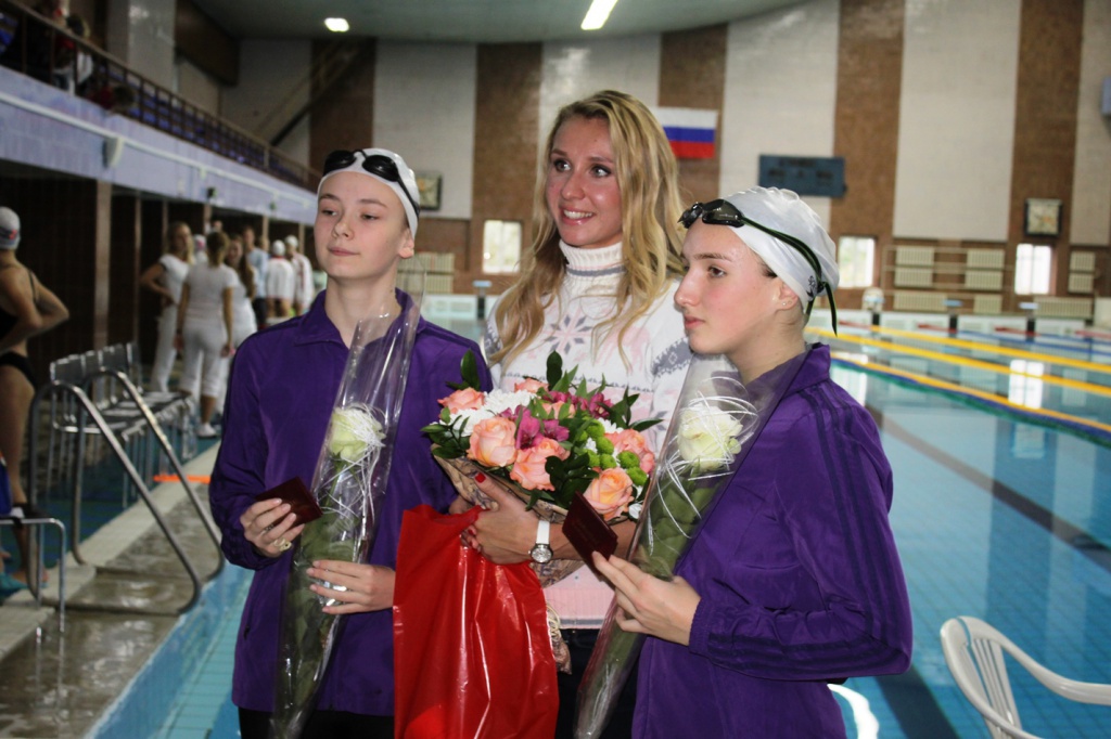 Наталья Ищенко поприветствовала синхронисток, а две получили из рук пятикратной олимпийской чемпионки звание кандидатов в мастера спорта.