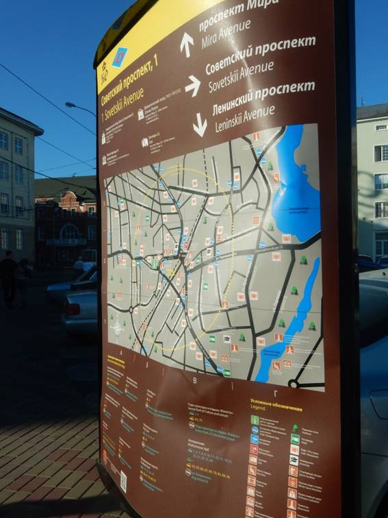 Остановки общественного транспорта – одно из наиболее удачных мест для размещения навигационные знаков, которые помогут людям ориентироваться в Калининграде в дни чемпионата.
