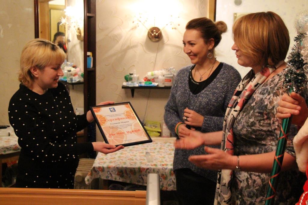 Елена Прокопчук вручила Машиной маме сертификат, подтверждающий перечисление средств, а Софья Лагутинская – набор «Цветной песок». Маше жизненно необходимы не только особые смеси, но и тактильные ощущения, возможность осязать и что-то делать руками.